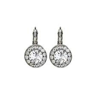 • Round cluster leverback earrings with a 7mm center stone and 2mm stones encircling. Made with unique, high quality crystals.
